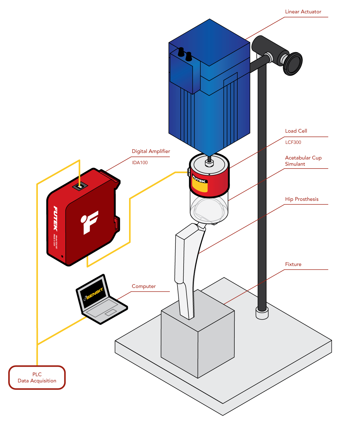 2、然后在髋臼杯和线性致动器之间安装一个 LCF300 轮辐式拉开云网页版·官方版在线登入,用于测试期间的力测量。